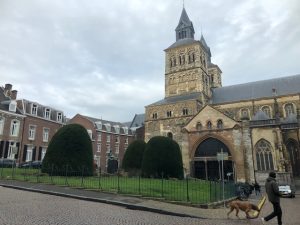 Vanaf de stadswallen lopen we richting Vrijthof. Hierbij komen we langs toch wel nieuwbouw binnen de oude stad waarbij architectonisch rekening is gehouden met de omgeving. Langs de Sint Jan, een bijkerk van de Sint Servaas omdat die indertijd te klein was voor alle gelovigen, en de Sint Servaas richting Vrijthof, Daar werd ons nog gewezen naar enkele bijzondere gebouwen en hoe men met enig vernuft toch een deel van het oude heeft kunnen bewaren en in stand houden.
